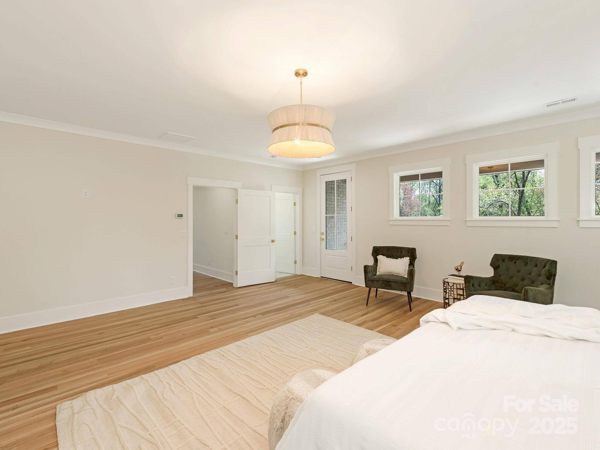 This #California Style home which reminds one of the #BeachBoys experience offers a Transitional New Construction home in Myers Park across street from EASTOVER neighborhood w/open floor plan. 5+Bd/4.5 Ba w/Ensuite Bdrm on 1st floor excellent for Au Pair or in Laws. Exquisite design features: custom metal front door, glass doors & picture window accents thruout, leading to several balconies & a terraced fenced backyard creating a wonderful ambiance of natural light. Gourmet kitchen has a lg quartz island & ctops & stainless ZLine Appls: Double Oven Range-7 Burner Gas Ctop w/pot-filler, MW Drawer, French Door & Wine Refrigs. Huge walk-in Pantry w/built-in shelves. Upper-Level Primary Bedroom Ste is a heavenly retreat w/its serene colors & relaxing spa-like bathrm. Upper-level: 3 other bedrooms:1 w/en-suite full ba & 2 w/ J&J ba. Laundry Rm.
